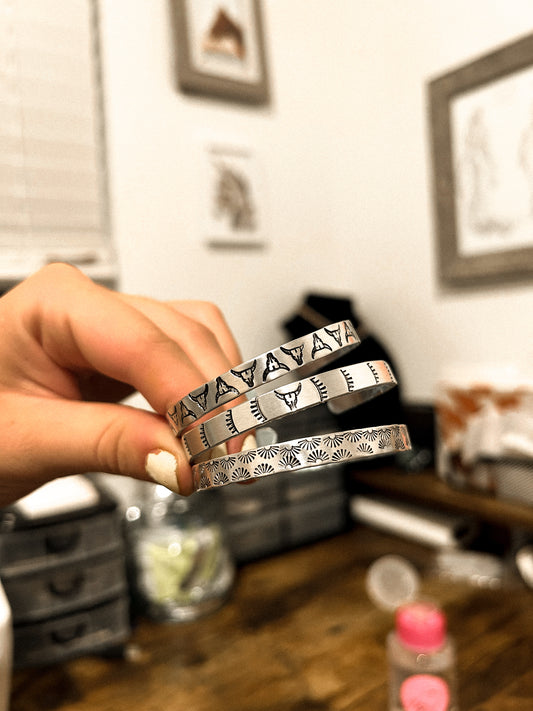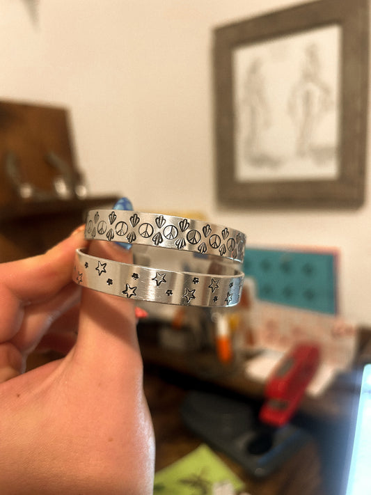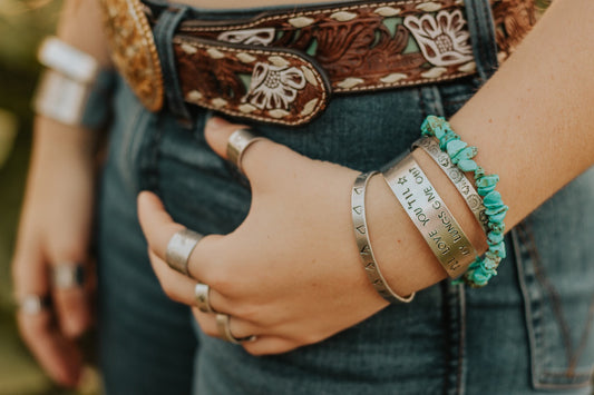 Our jewelry is made from 18-gauge aluminum, so you can easily adjust it by gently bending it. Just be careful not to bend it too much or it might snap! You just need to bend it enough to fit over your wrist/finger. The best part? It won’t turn your skin green like some metals, and it’s super affordable!