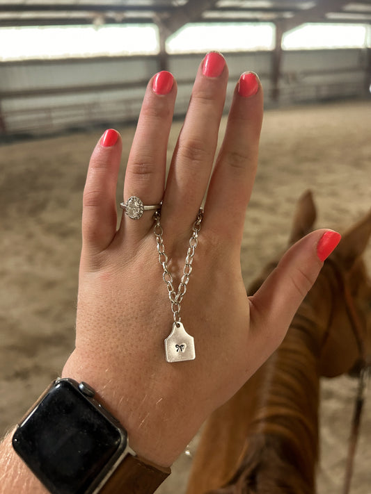 bow cattle tag necklace