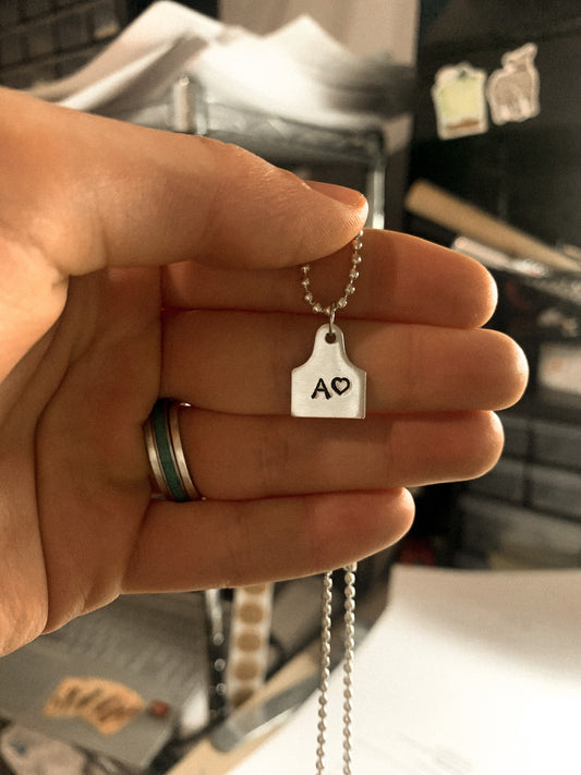 Sold outcustom small cattle tag necklace