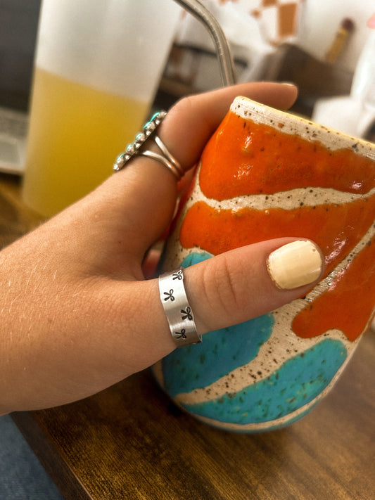 Our jewelry is made from 18-gauge aluminum, so you can easily adjust it by gently bending it. Just be careful not to bend it too much or it might snap! You just need to bend it enough to fit over your wrist/finger. The best part? It won’t turn your skin green like some metals, and it’s super affordable!