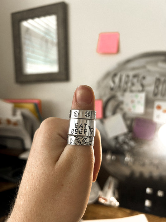Our jewelry is made from 18-gauge aluminum, so you can easily adjust it by gently bending it. Just be careful not to bend it too much or it might snap! You just need to bend it enough to fit over your wrist/finger. The best part? It won’t turn your skin green like some metals, and it’s super affordable!